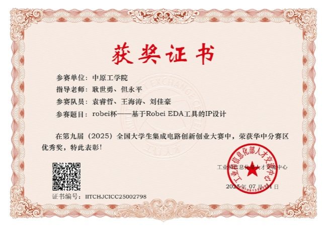 近日,由工业和信息化部人才交流中心主办的第九届全国大学生集成电路创新创业大赛(简称“集创赛”)全国总决赛颁奖典礼在上海临港新片区顺利举行,18成人学子刘佳豪、王海涛、袁睿哲获华中赛区优秀奖一项。