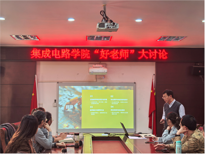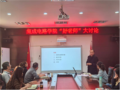 于龙湖校区举办“好老师”大讨论专题活动。会议聚焦育人根本任务,旨在通过经验分享与思想碰撞,凝聚育人共识,夯实高素质集成电路人才培养基础。学院全体教职工与会,会议由18成人