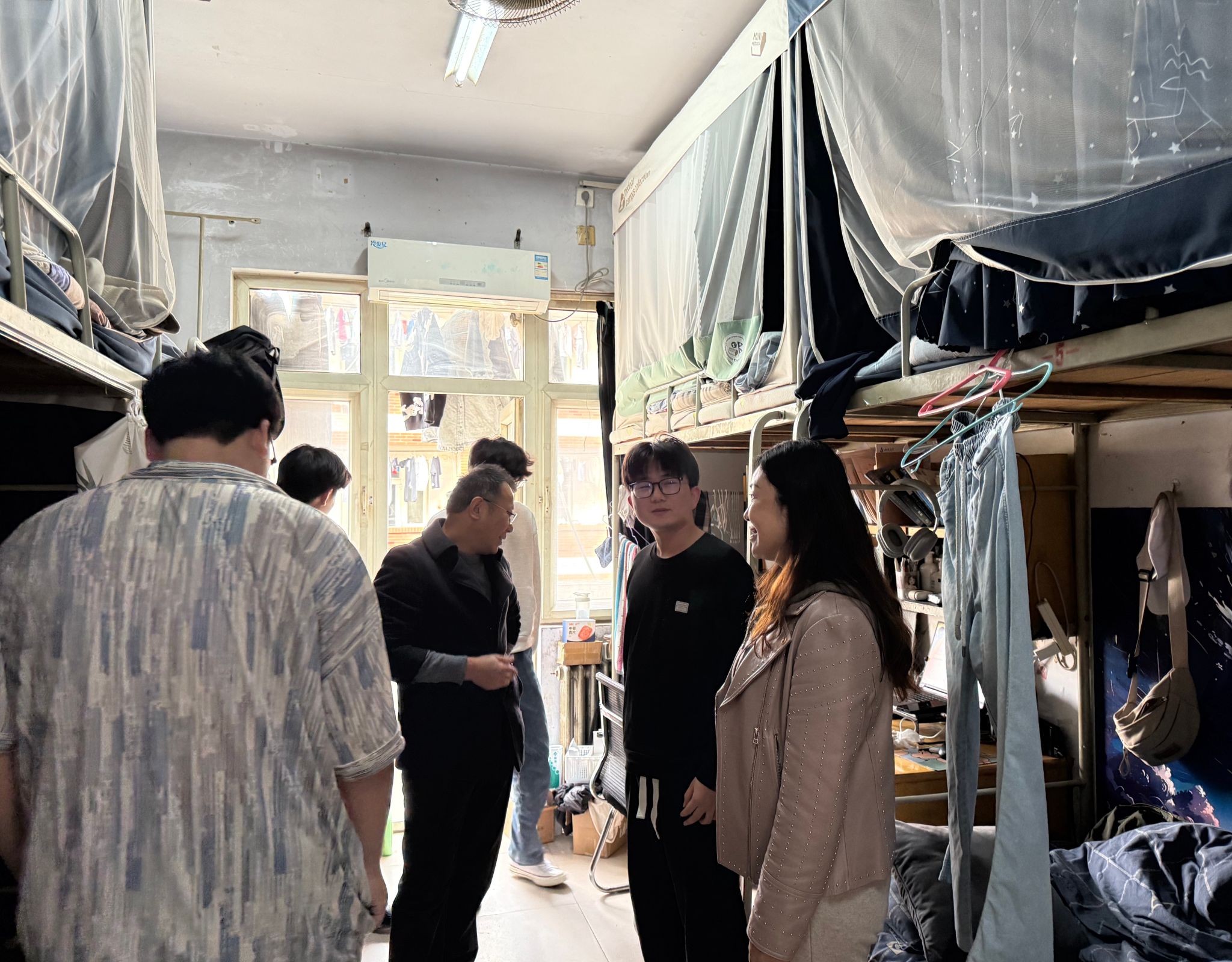 直属党支部书记任继江、副院长但永平带领全体专兼职辅导员、班主任深入各年级学生宿舍,开展消防安全检查工作。