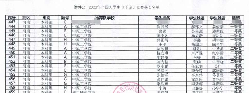 由电子信息学院和中原彼得堡航空学院代表学校参赛,共获得国家奖15项,其中国家一等奖5项、国家二等奖10项。获国家奖总数实现了又一新突破,获奖数量排名全国本科组中第9,持续保持河南省本科组第一名。